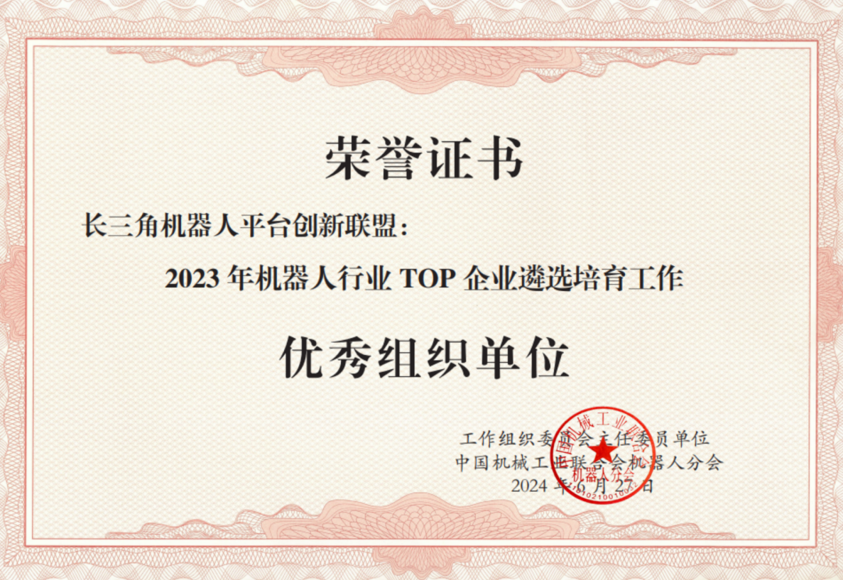 6月27日,2023机器人行业TOP企业遴选培育名单发布及企业交流会在北京召开。会上,正式发布2023年机器人行业TOP企业遴选培育名单。长三角机器人产业平台创新联盟(以下简称:联盟)推荐的4家企业入选,联盟获优秀组织单位奖。