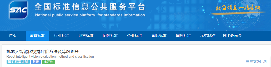国家标准《机器人智能化视觉评价方法及等级划分》(计划号:20241757-T-604)。