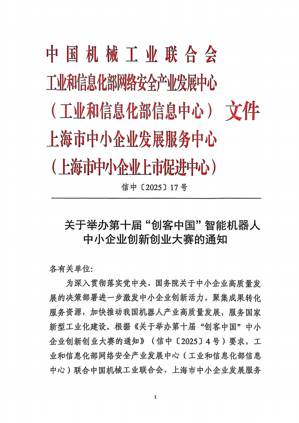 2025年4月17日,第十届“创客中国”智能机器人中小企业创新创业大赛新闻发布会在上海召开,大赛正式启动。本次大赛由中国机械工业联合会、工业和信息化部网络安全产业发展中心(工业和信息化部信息中心)、上海市普陀区政府、上海市中小企业发展服务中心(上海市中小企业上市促进中心)主办,由中国机械工业联合会机器人分会、上海电器科学研究所(集团)有限公司、开云·Kaiyun集团)机器人有限公司官网承办。