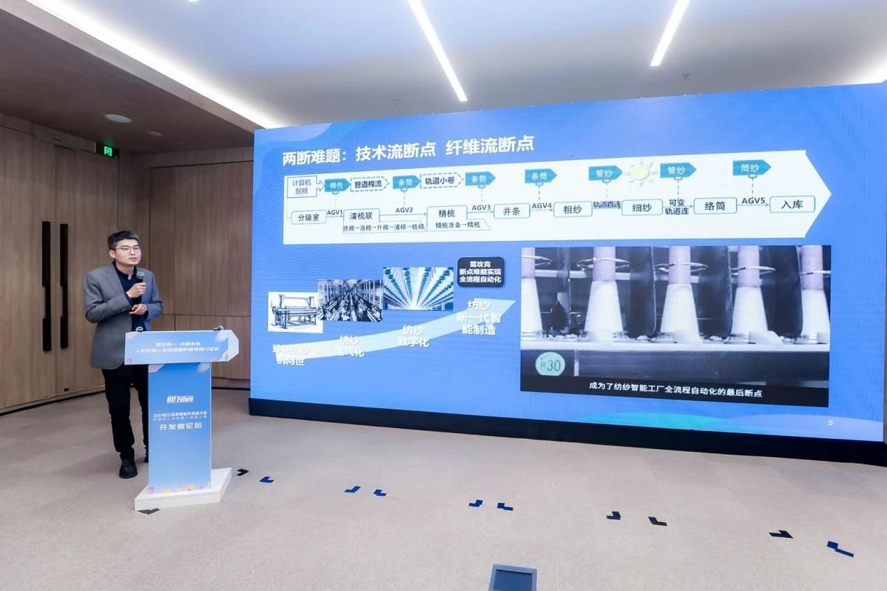 由长三角国创中心以"拨投结合"模式支持的重大项目公司——无锡灵奕智能科技有限公司在发布了产品“纤灵-细纱自动接头具身智能机器人”。总经理汪俊亮表示,灵奕智能聚焦柔性体灵巧操作具身智能机器人研发,围绕纺织领域全流程自动化面临的细纱断点问题,首创巡游式细纱接头机器人,达到国际领先水平,目前正计划进行机器人智能制造基地建设,并推进人形机器人项目预研,未来将拓展至半导体/光电子等领域。
