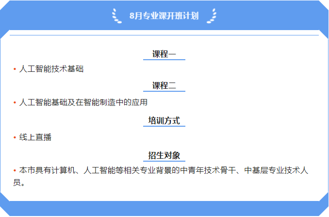 8月专业课开班计划