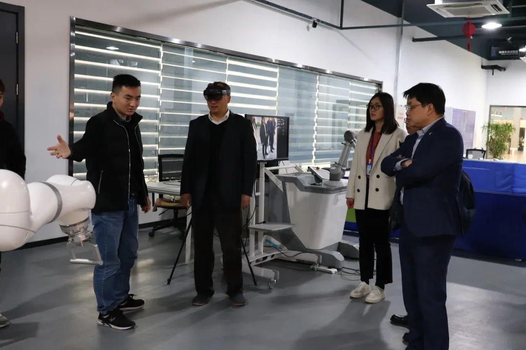 会议结束后,机器人开云·Kaiyun/a>院长黄慧洁带领三一集团专家和领导参观了开开云·Kaiyun和重点实验室,并向大家介绍了开云开云·Kaiyun职能和技术,在智能感知实验室,三一集团领导对MR眼镜颇感兴趣,亲身体验了MR眼镜,在虚拟环境中体验技术之美。