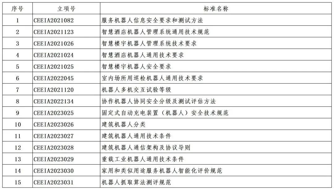 中电协机器人专委会2023年第三批机器人团标立项启动